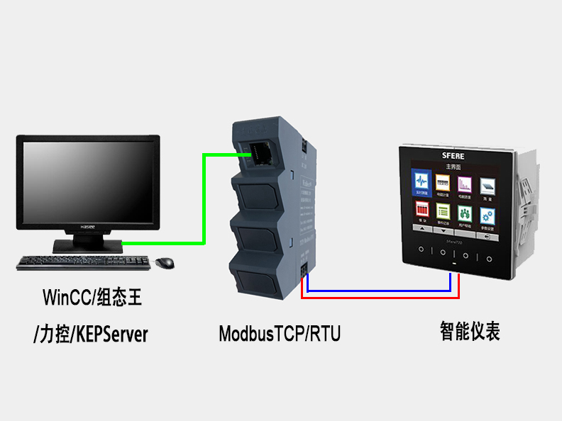 通過(guò)ModbusTCP/ModbusRTU,可將帶有ModbusRTU協(xié)議(RS485)通訊的設(shè)備,如:智能儀表、PLC、變頻器等直接與上位機(jī)通訊。