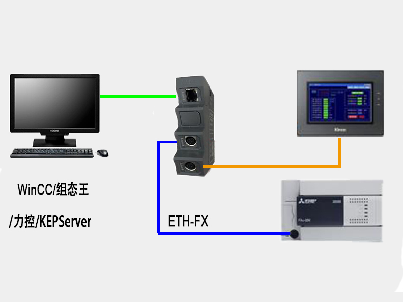 通過(guò)ETH-FX,可將三菱FX系列PLC,如:型號(hào)FX1N/1S/2N/3S/3G/3GC/3U/3UC 轉(zhuǎn)成以太網(wǎng),直接與上位機(jī)通訊。